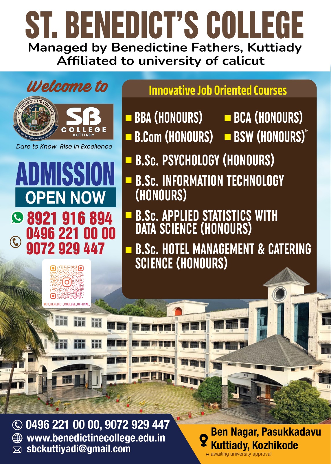Eligibility: Candidates who have passed the Higher Secondary Examination (Plus Two) of the Kerala State Board or any equivalent examination with Mathematics or Statistics as one of the subjects are eligible for admission.